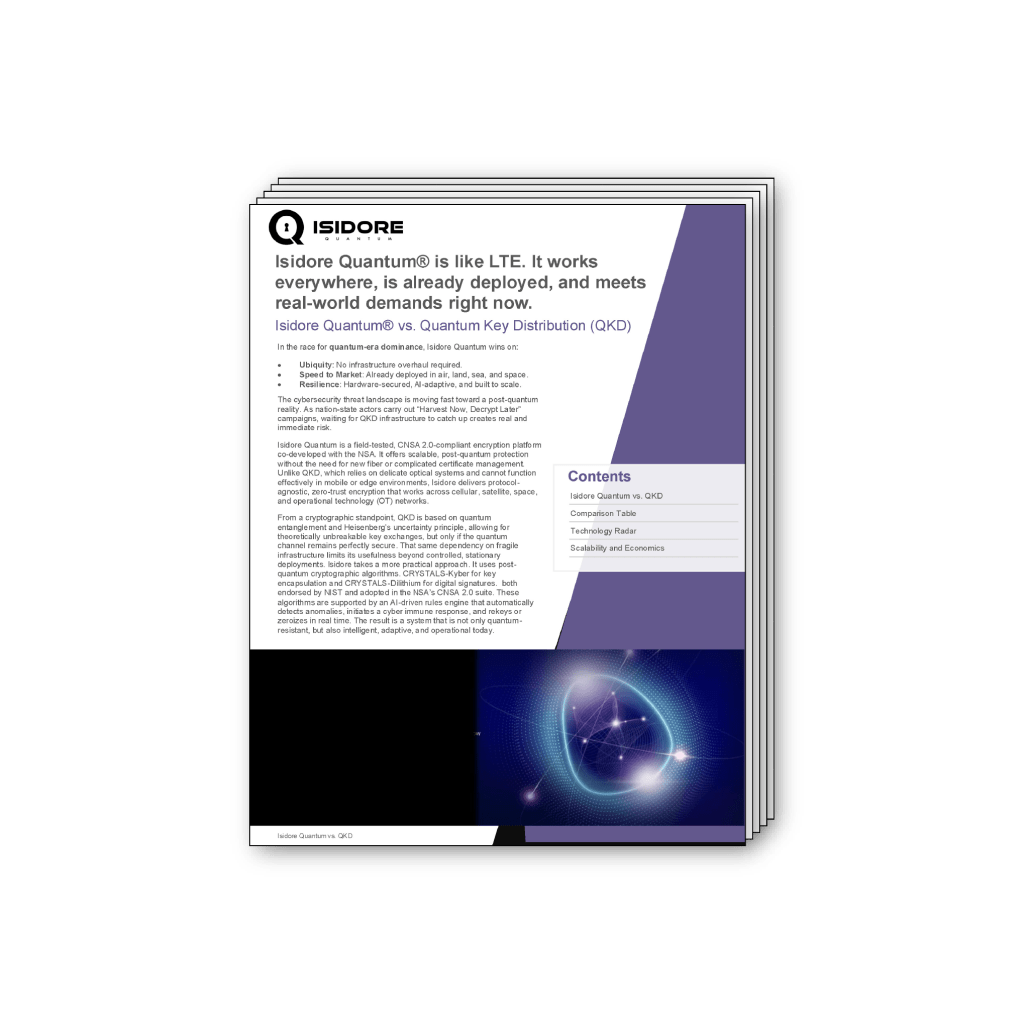 Invented by NSA experts and commercialized by Forward Edge-AI, Isidore Quantum® is a CNSA 2.0-compliant quantum-resistant encryption device designed for the toughest environments and critical operations